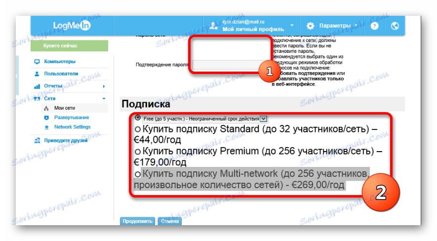 Brezplačna različica Hamachi omogoča ustvarjanje lokalnih omrežij s povezavo do 5 strank hkrati. Po potrebi se lahko ta številka poveča na 32 ali 256 udeležencev. Za to mora uporabnik kupiti naročnino s potrebnim številom nasprotnikov. Poglejmo, kako je to storjeno.